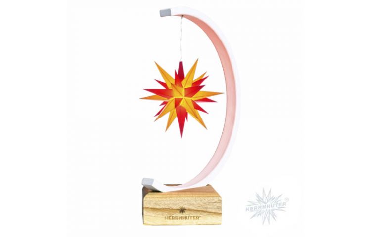 Sternenbogen aus Metall weiß-glitter mit einem Herrnhuter Stern 13 cm gelb-rot